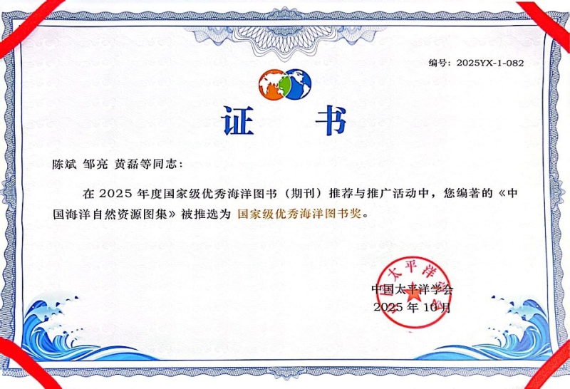 近日,在中国太平洋学会开展的国家级海洋优秀图书(期刊)评选推荐活动中,由中国地质调查局青岛海洋地质研究所陈斌正高级工程师牵头编著的《中国海洋自然资源图集》被评选为2025年度国家级优秀海洋图书。