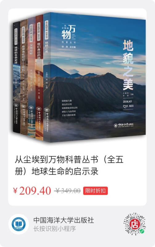 2026年1月8日,《从尘埃到万物》科普丛书正式出版发布。该丛书共五册,分别为《地球演化印记——化石》《深海探秘》《地貌之美》《地球的生命史诗》和《我们身边的地质》。丛书由中国地质调查局青岛海洋地质研究所副所长印萍研究员担任总主编,中国海洋大学出版社策划出版。