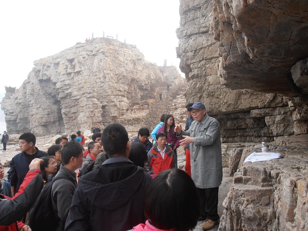 一等奖作品 拍摄主题:《传承》 拍摄时间:2013.11.2 拍摄地点:长岛万丈崖 作者:张光威 拍摄内容:野外考察,何启祥研究员讲解长石石英砂岩与海蚀地貌
