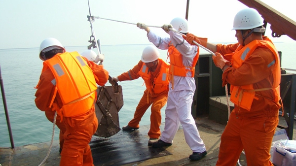 二等奖作品 拍摄主题:《齐心协力》 拍摄时间:2012.10.8 拍摄地点:渤海 作者:郭建卫 拍摄内容:海上地质取样作业场景