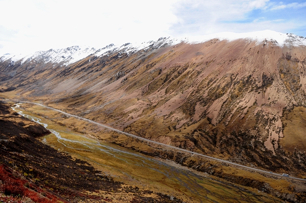 三等奖作品 拍摄主题:《大地沿河流》; 拍摄时间:2013.10.5 地点:西藏林芝县米拉山口作者:毕世普 拍摄内容:雪水融化汇聚成弯曲的河流,道路沿着河流的走向延伸至远方,山体可见雪水冲蚀的地貌