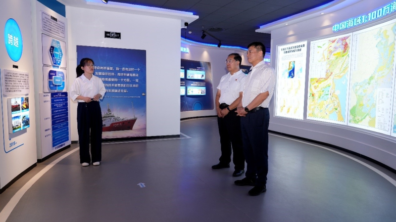 调研期间,李明一行先后参观了青岛海洋地质研究所科技成果展厅、自然资源部天然气水合物重点实验室、大洋钻探岩心库,系统了解了青岛海洋地质研究所在海洋基础地质调查、海岸带综合研究、油气资源调查等领域取得的主要成果,深入交流了天然气水合物勘查试采等方面的前沿成果。