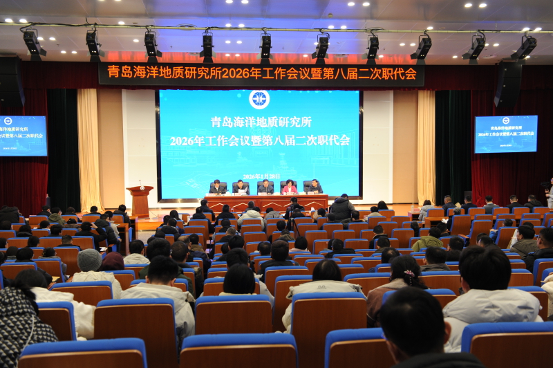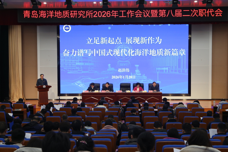 1月28日,中国地质调查局青岛海洋地质研究所召开2026年工作会议暨第八届二次职代会。青岛海洋地质研究所所长、党委书记赵洪伟作题为“立足新起点 展现新作为 奋力谱写中国式现代化海洋地质新篇章”的工作报告,副所长印萍主持会议,纪委书记宋平舰、副所长苏晓江、白凤龙出席会议。本次会议采用“现场+视频”的方式召开,全所干部职工参加会议。