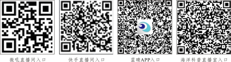 观看方式:本次活动通过微吼、快手、青岛市广播电视台蓝睛APP等平台直播。观众可以使用手机端或电脑端,关注“地调科普”微信公众号,点击“科普讲堂”进入微吼直播,或通过快手搜索“小黑马科学”,或通过“蓝睛APP”进入直播间收看,或通过“青岛海洋科技馆海洋科普直播室”收看。