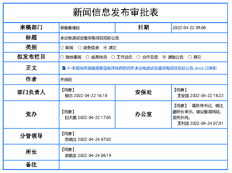 本次招标公告在中国政府采购网发布,同时在中国地质调查局、青岛海洋地质研究所等网站发布。
