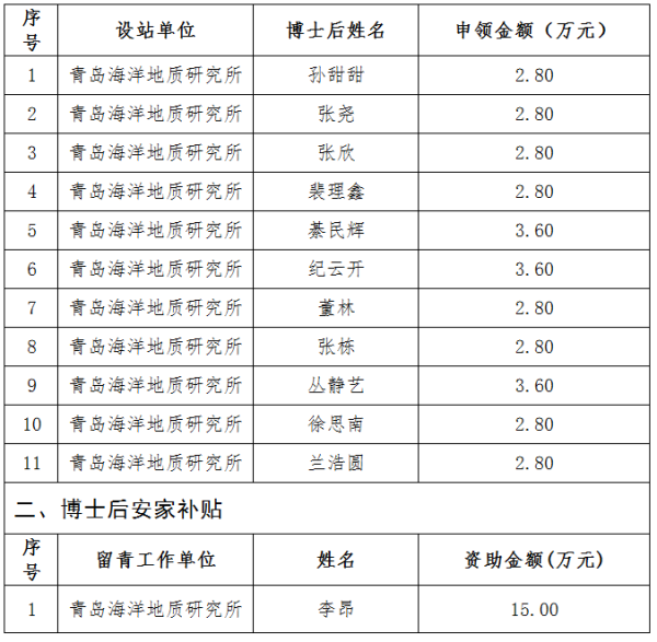 根据《关于印发<青岛市促进博士后聚青创新创业实施细则>的通知》(青人社发〔2022〕7号)及《关于组织做好2023年第一批博士后资助审核发放工作的通知》等有关要求,现对青岛市2023年第一批博士后资助拟发放单位及人员(详见附件)予以公示,公示时间:2023年4月4日-2023年4月11日。