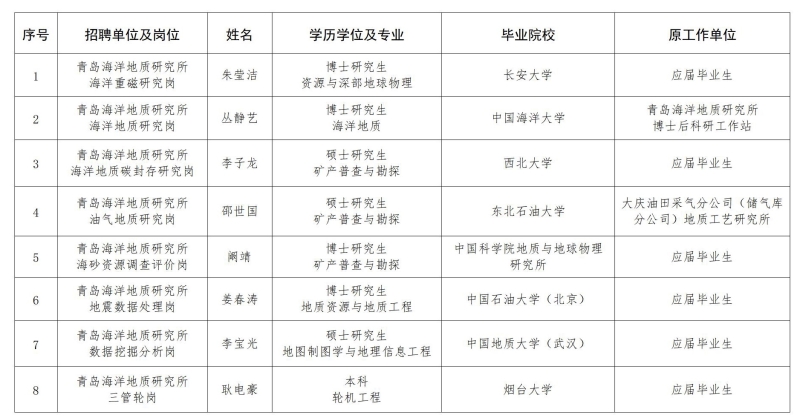 青岛海洋地质研究所2023年度公开招聘工作人员拟聘人员公示(第一批)